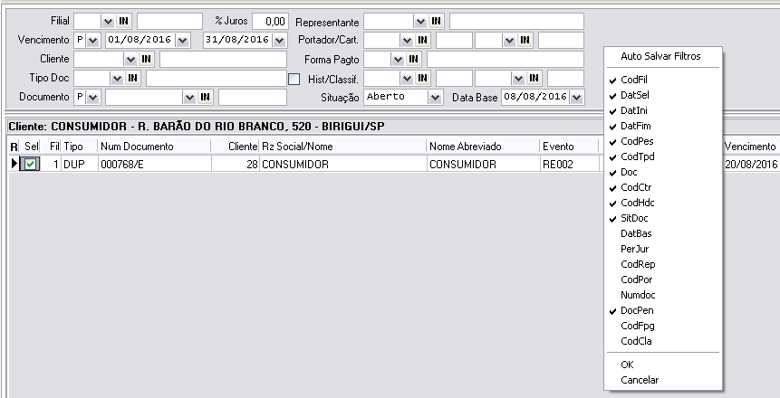 - Algumas telas são pré-programadas para salvar valores entre uma sessão e outra. Esta configuração permanece, ou seja, mesmo que o usuário não selecione o campo, o mesmo salvará os valores informados caso a referida tela já esteja programada para isso.