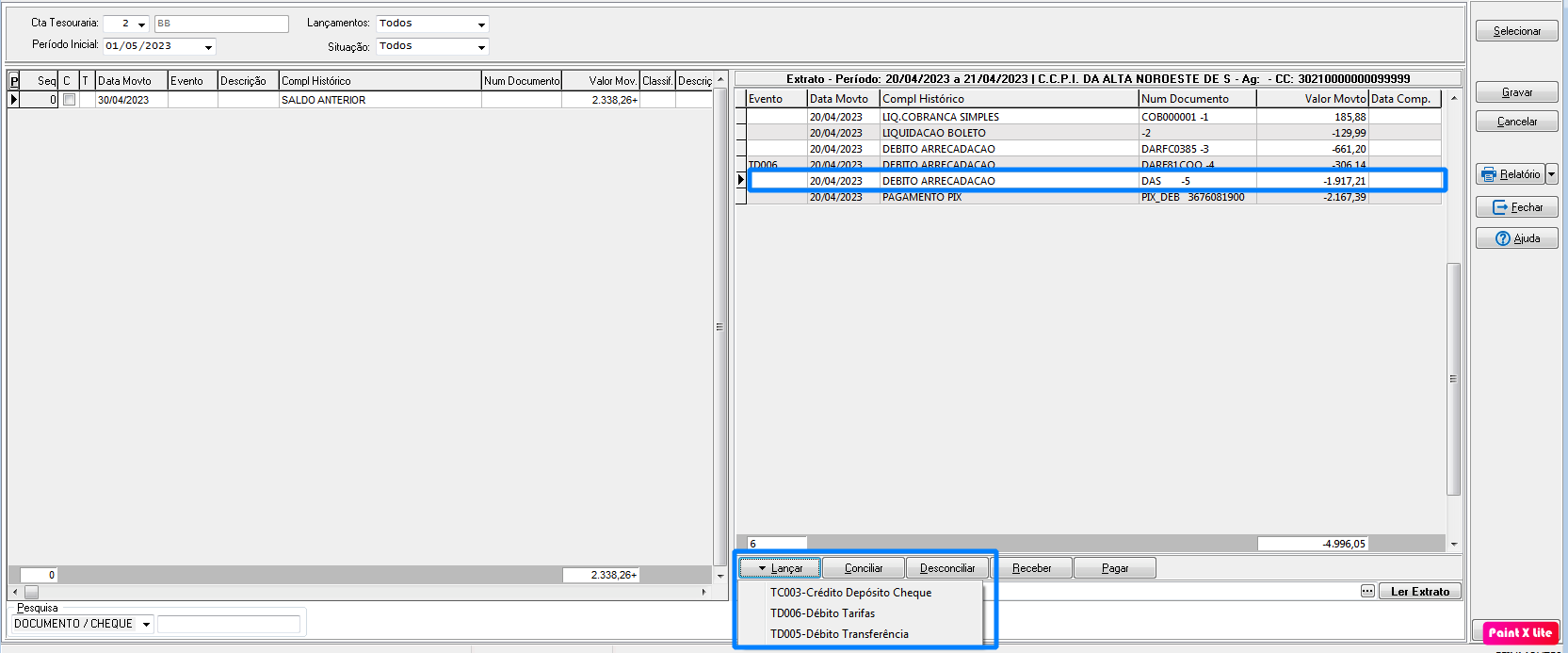 Efetuar Lançamentos na Conta a partir do Extrato¶
