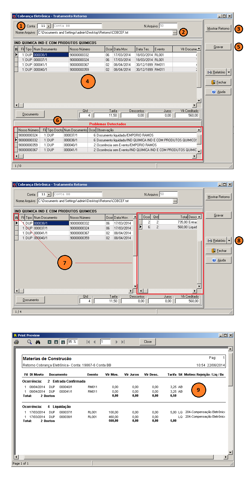 - Após Gravar (processar o retorno), pode-se clicar em Relatório para imprimir as ocorrências