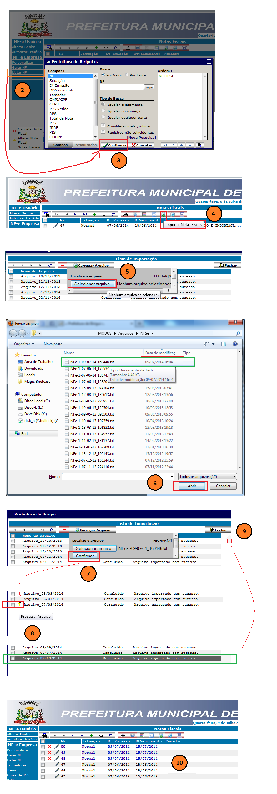 Sequencia de processos necessários para emitir NF de serviço municipal